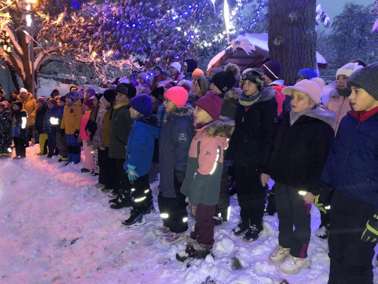 V sobotu 2. 12. rozsvítily děti z MŠ a ZŠ Kájov vánoční strom. Foto: Alena Slámová